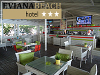 Το EVIANA BEACH HOTEL είναι 3 ***, κεντρικό, πάνω σε αμμώδη παραλία, δίπλα στο περίφημο Νησί των Ονείρων και πλάι στο πολυσύχναστο τουριστικό πεζόδρομο της Ερέτριας με τις πολλές ψαροταβέρνες, τα café και τα night clubs που προσφέρονται για τη νυχτερινή ζωή της πόλης. Απέχει λίγα μέτρα από το εμπορικό κέντρο, 300 μ. από το Αρχαιολογικό Μουσείο και μόλις 250 μ. από το λιμάνι.